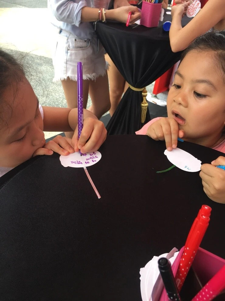 음력설 전이다 보니 센토사섬에 소원나무가 설치되어 있다. 첫째는 주렁주렁 걸려있는 소원들을 보더니 메모지를 찾아 열심히 소원을 적는다. 둘째는 그런 언니를 유심히 보면서 배운 적도 없는 글자를 하나하나 따라 그린다.