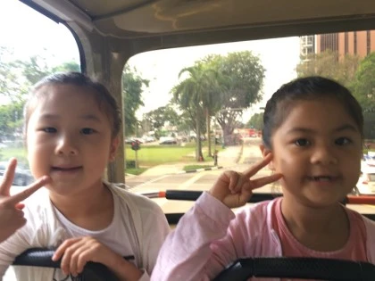 그런데 갑자기 아저씨, 무릎을 꿇더니 우리 딸들 사이에서 포즈를 취한다. 무슨 상황인지 잠시 이해 못하고 바라보다, 얼떨결에 딸들과 아저씨 사진 찍었다. 아이들 너무 예쁘다며 한 동안 눈을 못 떼시는 모습이 좀 많이 당황스럽긴 했지만, 아이들을 귀엽게 봐주시는 감사한 마음 전하고 하버프론트역으로 향했다.