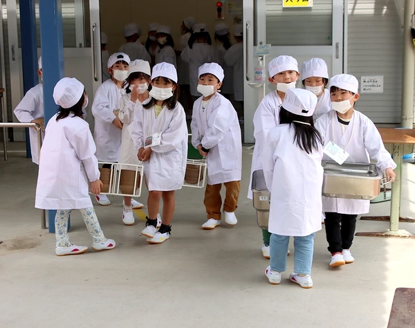 2024년 초등학교 1학년생의 급식당번 데뷔 (자료출처 https://www.ryoutan.co.jp/articles/2024/04/96209/)