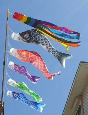 또 다른 장식물로 고대 중국의 고서 「등용문(登龍門)」의 내용 중, 황하강 상류에서 살던 잉어가 용이 되어 하늘로 승천했다는 기록을 빌어 입신출세(立身出世)를 기원하는 의미로 아들의 성장과 건강을 염원하는 마음을 담아 생명력과 강한 힘을 의미하는 잉어 깃발(鯉のぼり)을 장식하기도 한다.