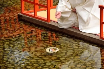 딸의 행복과 건강을 위해 액막이 인형을 강으로 흘려보내는 의식