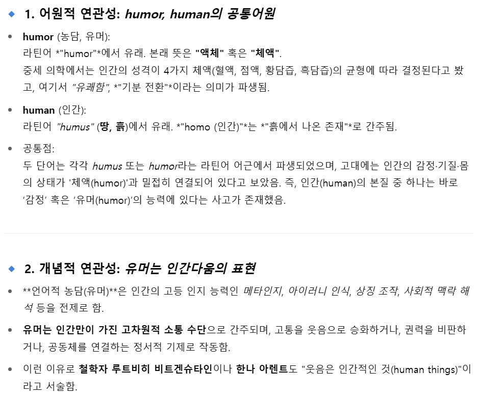 휴모르는 인간(human)과도 연관이 있다고 한다.