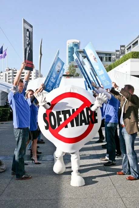 ‘No More Software’ 구호로 만든 뱃지를 만들어서 늘 하고 다니며 자신의 앞선 생각을 제시했습니다.
