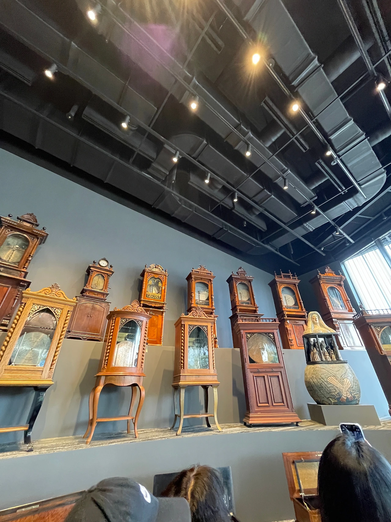 홀 끝에는 대형 괘종시계처럼 생긴 최초의 상업 주크박스가 위치해 있었다. 아쉽게도 청음은 어려웠다.