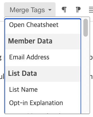 이메일 마케팅 툴이 제공하는 세 번째 유용한 기능은 'Merge tag 머지 태그' 기능입니다. 이는 '개인화'를 위한 기능입니다. 이메일 마케팅이 더욱 효과적이기 위해서는 개인화된 이메일을 발송하는 것이 좋다는 잘 알려진 이야기가 있습니다. 이를 쉽게 할 수 있게 하기 위해 이메일 마케팅 툴에는 각 사람에게 해당하는 정보를 쉽게 넣을 수 있도록 Merge tag 기능이 탑재되어 있습니다. 이 Merge tag의 확장 가능성 또한 서비스의 무료/유료 여부와 서비스 제공사에 따라 조금씩 차이가 있기도 합니다.