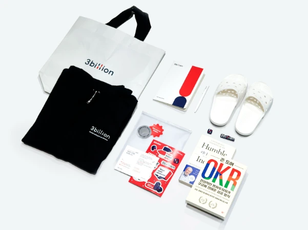 슬리퍼와 지비츠, 노트와 펜을 새로 제작하고 키트 외에 따로 지급되던 후드집업과 필독 도서까지 다 한 번에 담기 위한 리유저블 가방을 제작했다. 기존 직원들에게서 하나같이 웰컴키트를 다시 받고 싶다는 원성이 터져나왔다. 제품을 선택하고 업체를 선정하고, 감리를 보는 등 과정은 힘들었지만, 직원들 모두 좋아하는 모습을 보며 보람을 느꼈다.