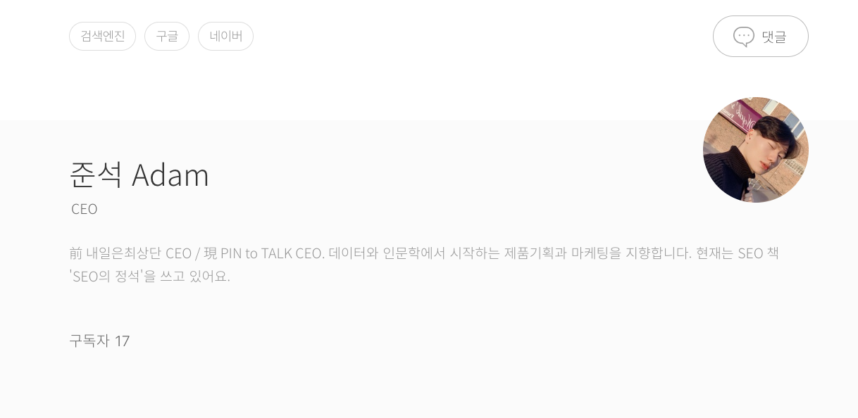 이에 대한 전문성을 보여주기 위해 브런치에 제가 SEO 컨설팅 사를 운영했고, 지금은 SEO 관련 책을 쓰고 있다고 적어두었습니다. 이는 방문자들에게 SEO에 대한 제 전문성을 보여주기 좋은 지표입니다.