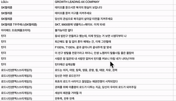 그렇게 저는 2020년부터 2024년까지, 무려 40,000개의 카피라이팅 데이터를 모으기 시작했습니다. 수집하고, 분석하고, 전처리하는 과정은 쉽지 않았지만, 실제 카피라이팅 데이터를 통해 빠르게 여러 카피라이팅 아이디에이션을 할 수 있다면 그 시간을 보답받을 수 있을 거라 생각했습니다.