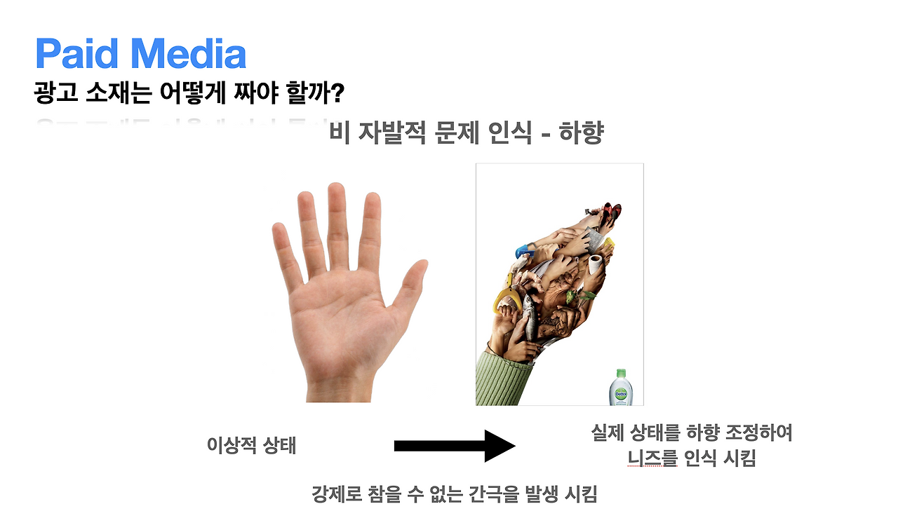 스타트업이라 함은 무언가 Fancy 한 걸 상상하는 경우가 많습니다. 하지만 오히려 클래식한 광고로부터 영감을 많이 얻어야 합니다. 위 사진은 제가 학부 시절에 교수님이 주셨던 자료입니다. 우리가 만든 물건을 소비자가 '왜' 필요하게 만들지 직관적으로 이해시키는 광고 사례입니다. 한눈에 왜 우리가 덴톨에서 만든 손 세정제가 필요한지 이해시켜 주는 자료죠.
