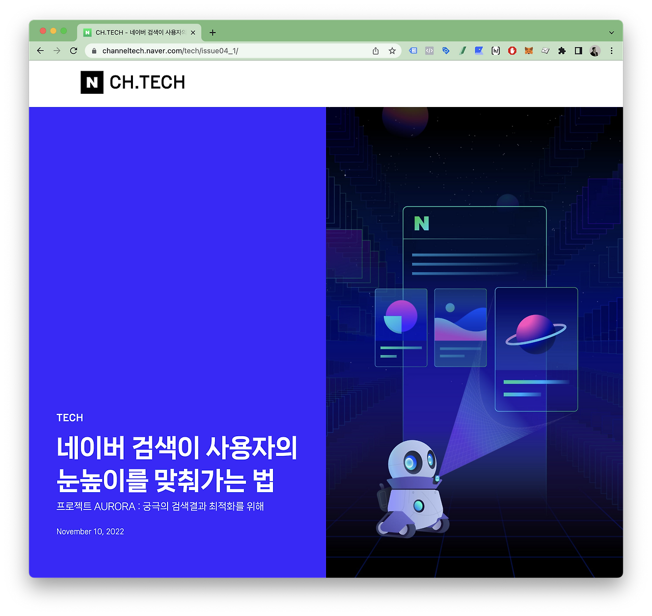 하지만 2022년도 10월 네이버 엔진의 대대적인 업데이트가 있었는데요, 바로 프로젝트 Aurora입니다.