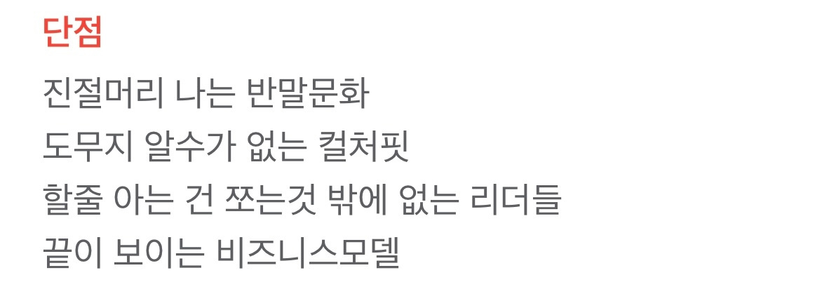 그리고 위 두 개가 명확하지 않은데 스타트업이니까 열정을 갖고 미친 듯이 하라고 한다