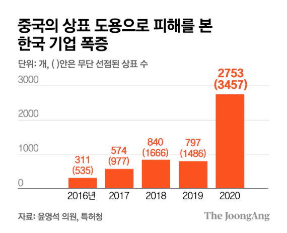 매년 중국 브로커에 의해 한국 상표를 빼앗기는 건수는 증가하고 있으며, 중소 기업의 경우 변리사의 도움을 받지 못해 중국 브로커에게 속수무책으로 상표를 빼앗기고 당합니다.