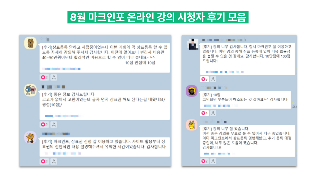 상표등록 관련 강의 외에도 다양한 주제로 강의를 진행할 예정이니,