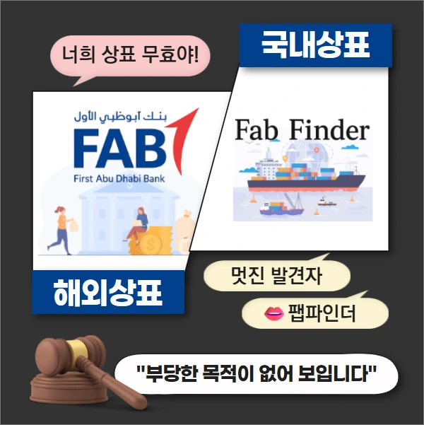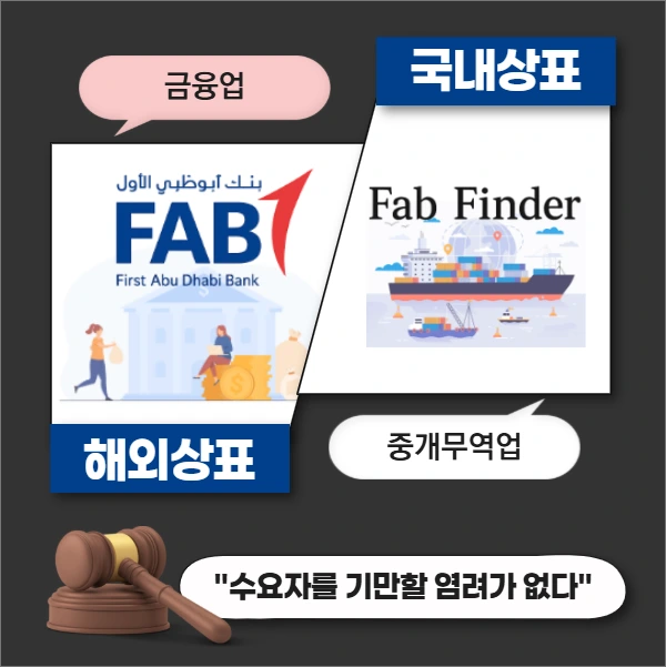 등록된 'Fab Finder'는 중개무역업에 사용되고, 은행은 금융업으로 업종도 다름