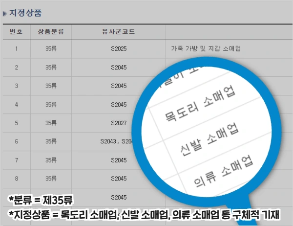 모든 제품/서비스는 45개의 분류(류)로 나뉘며, 내 사업에 맞는 분류를 골라야합니다.