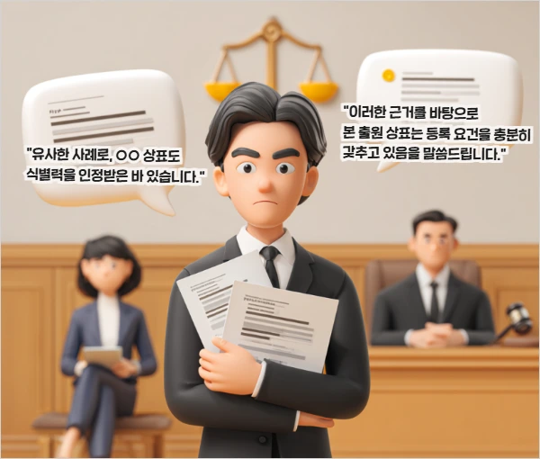 상표법, 판례, 유사사례에 기반한 논리적 대응이 필요하기 때문입니다.