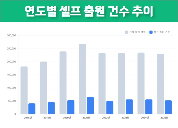 이 중 약 52,700건은 셀프 출원으로 진행된 것으로 파악됩니다.