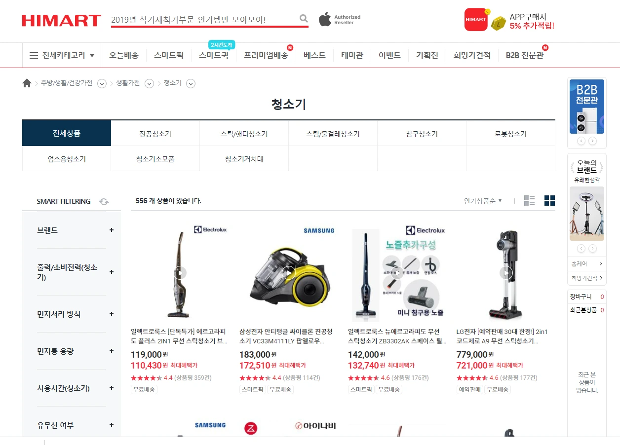 다양한 종류의 청소기를 판매하고 있습니다.