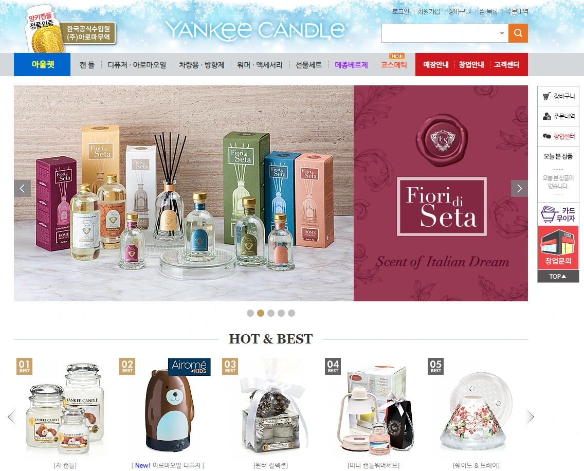 다양한 종류의 향초 제품을 판매하고 있습니다.