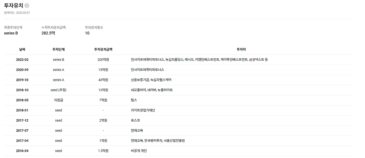 마인드카페의 운영사 아토머스는 2016년 4월 엔젤 투자를 시작으로, 지금까지 누적 282.5억 이상의 투자를 유치했습니다. 금번 투자는 시리즈B 단계로 인사이트에쿼티파트너스, 녹십자홀딩스, 해시드, 이앤인베스트먼트, 케이투인베스트먼트, 삼성네스트 등의 투자사로부터 200억 원의 투자를 유치했습니다.