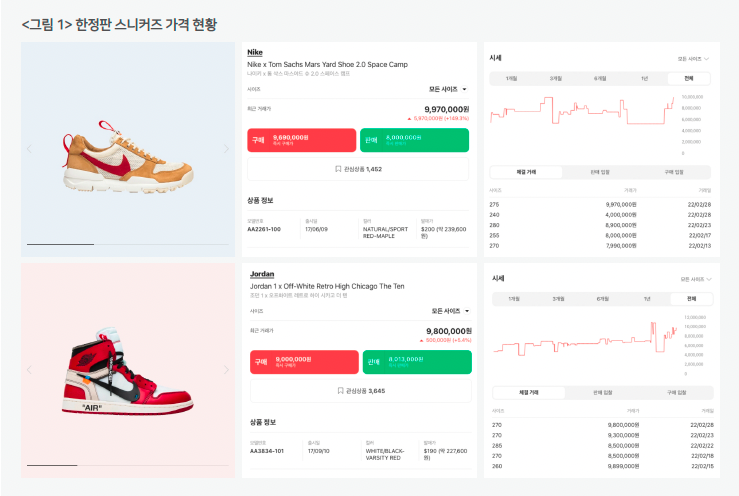 본 분석에서는 이와 유사한 대표적인 국내 리셀거래 중개 플랫폼 “크림”과 “솔드아웃”을 분석해보고자 한다. 특정 스니커즈의 리셀가격이 천정부지로 오른다고 해서 브랜드의 직접적인 수익이 증가되는 것은 아니다.