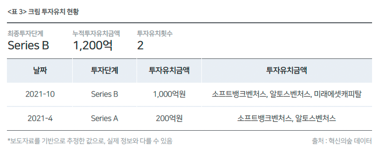 본 리서치 리포트는 80개 정량적, 정성적 데이터를 자동으로 수집하여 스타트업의 성장을 예측하고 분석하는 스타트업 성장분석 플랫폼 '혁신의숲' 데이터를 기반으로 작성되었습니다.