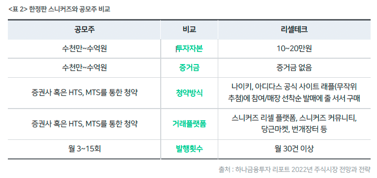 그러나 이들이 한정판 신발을 원하는 더 큰 이유는 매력적인 투자상품이어서라기 보다는 남들이 갖지 못한 것을 과시하고 자신의 개성을 드러낼 수 있는 것을 소유하고자 하기 때문이다. 상황이 이렇게 흘러 가다보니 오로지 재판매만을 목적으로 리셀을 주도하는 업자들이 가세함에 따라 시세가 왜곡되고 왜곡된 시세에 의해 시장가가 다시 영향을 받는 현상은 가속화될 것으로 전망된다.