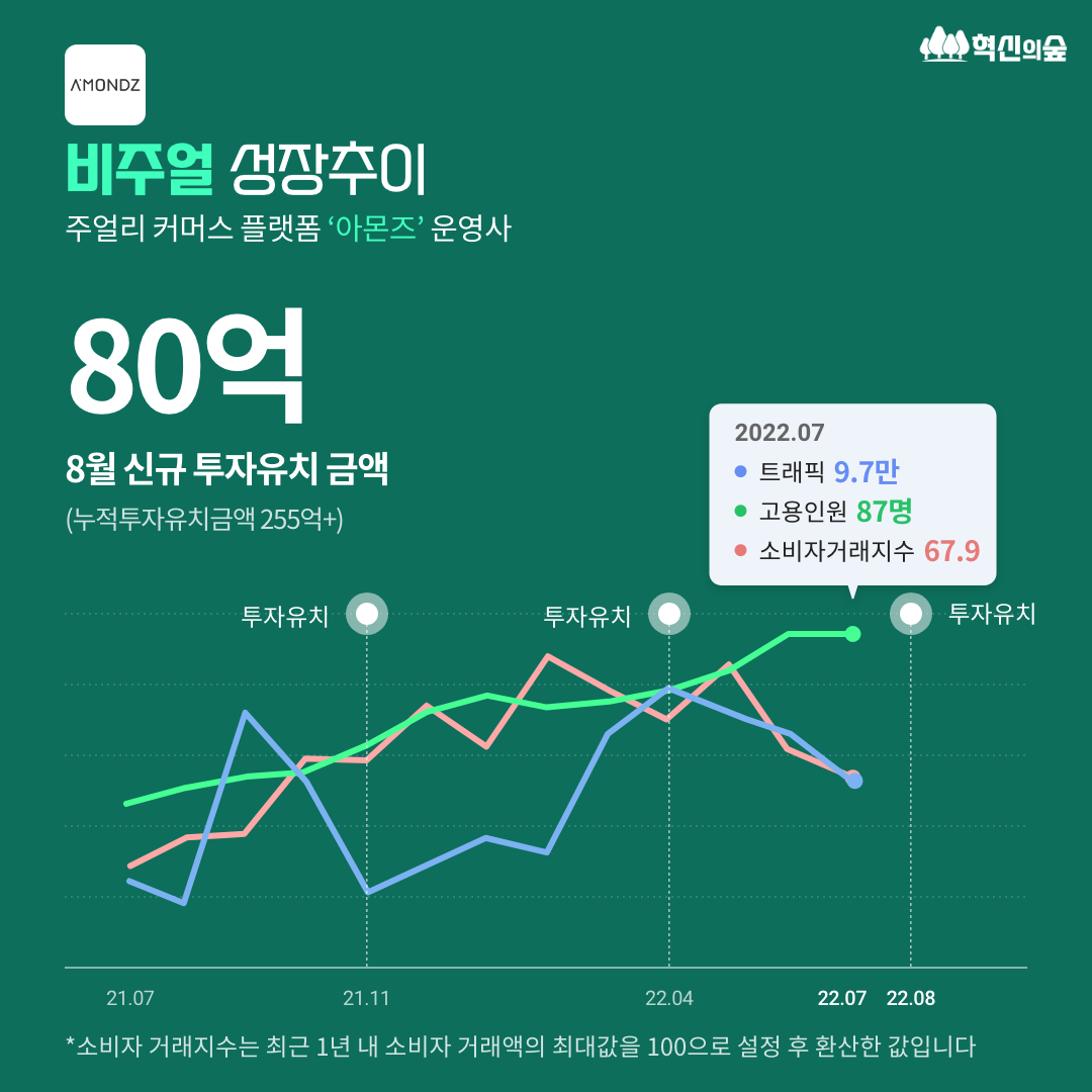 이번 콘텐츠에서는 8월에 투자 받은 스타트업 중, 혁신의숲 회원이 많이 조회한 5개 기업을 소개합니다. 혁신의숲에서는 5개사뿐만 아니라 8월에 투자 받은 125개 스타트업의 트래픽(MAU), 거래액, 소비자 거래 객단가, 소비자 유형, 재구매율 등을 모두 살펴보실 수 있으니, 투자 받은 스타트업들이 최근 36개월간 데이터가 어떻게 성장했는지 확인해 보세요!