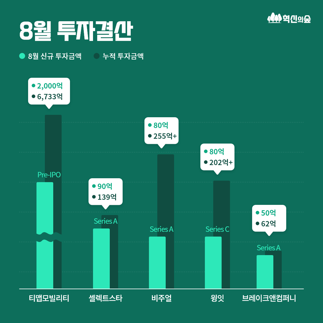 - 8월 신규 투자유치 금액 : 80억
