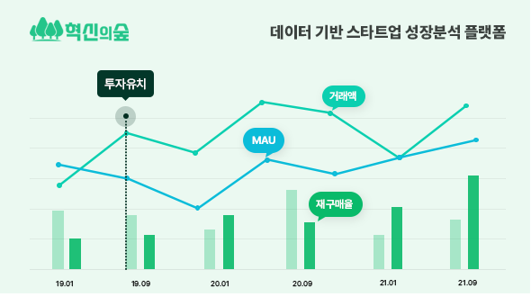 아울러, 혁신의숲은 건강한 스타트업 생태계를 만드는데 기여하고, 스타트업 성장의 가치를 많은 분들에게 전달하기 위해 12월 초부터 4,000여 개 스타트업의 모든 성장 데이터를 무료로 개방하고 있습니다. 직접 둘러보며, 스타트업의 투자 정보, MAU, 거래액, 소비자 데이터, 재방문율, 특허, 매출, 고용 등 다양한 데이터를 확인해보세요!