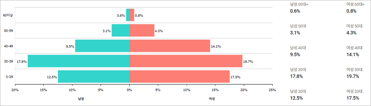 스타트업의 자사 서비스를 이용한 소비자의 성별, 연령, 가족 구성, 소득 등의 정보를 제공합니다. 벤치마킹, 경쟁사 서비스의 고객 데이터 정보를 분석하여, 마케팅 타깃 전략 수립 시 활용할 수 있습니다.