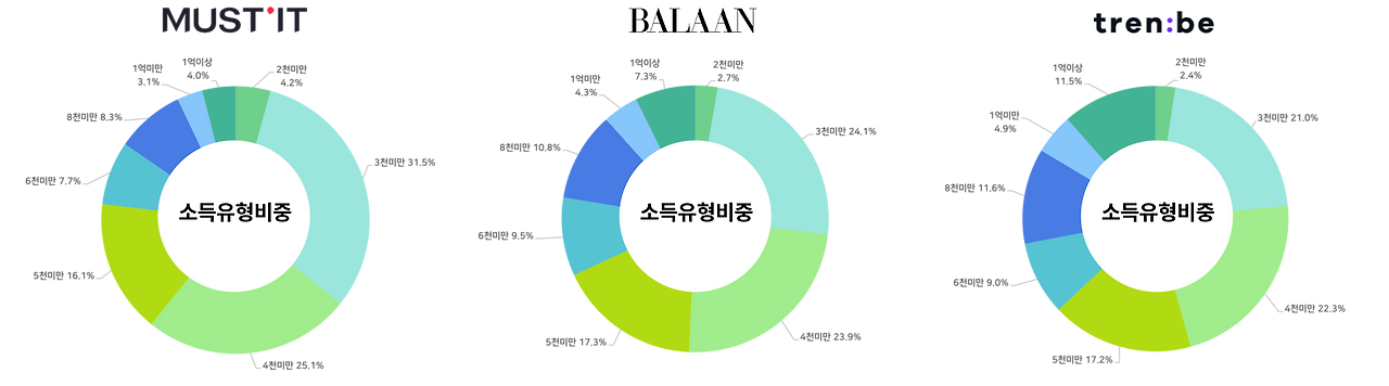 - 6천만 원 이상 고객 비율은 '트렌비'가 28%, '발란'은 22%, '머스트잇'은 15%.