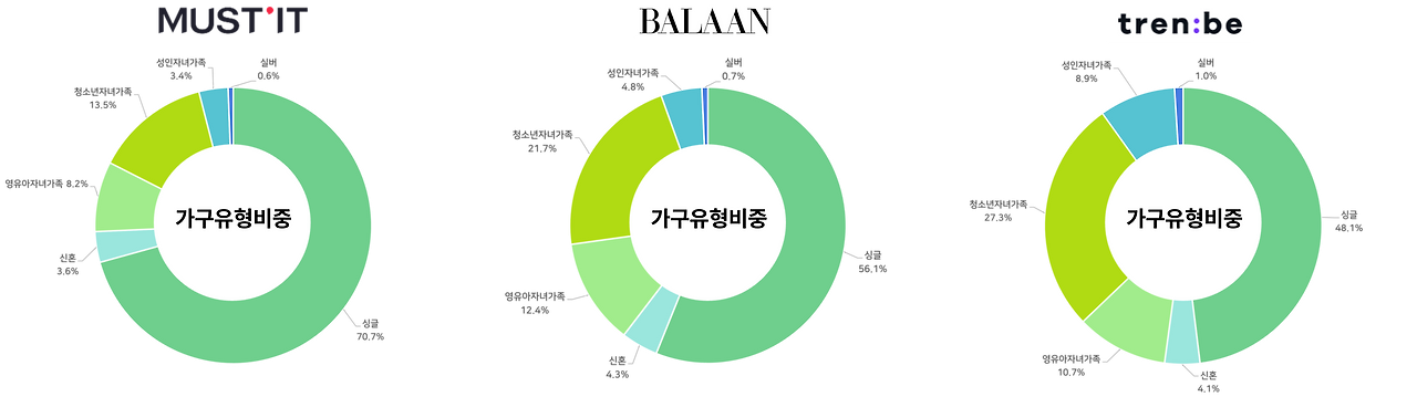 - 3개사 공통적으로 MZ세대가 속하는 '1인가구' (전체의 48%~71%) 비중이 높음