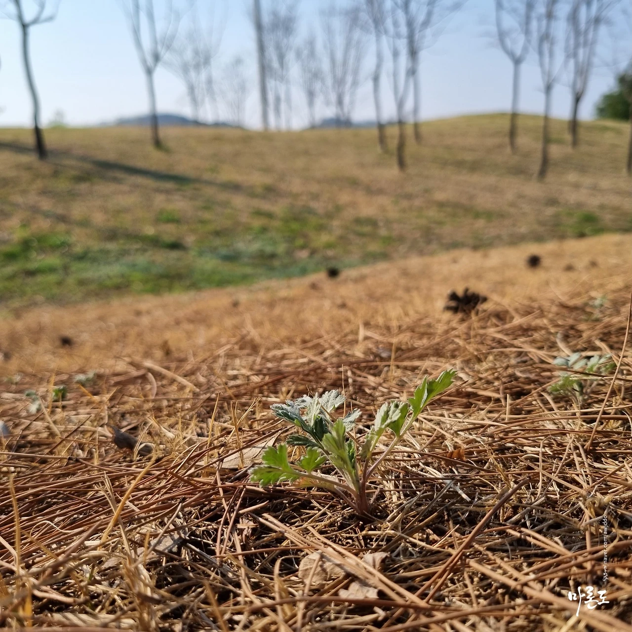소나무 가지 사이로 햇살이 보였다 안 보였다 눈을 간지럽히고 따뜻하면서도 서늘한 공기가 상쾌하게 느껴졌다. 누워서 고개를 돌려보니 흙 속에서 빼꼼히 내민 어린 쑥들과 작은 민들레, 이름 모를 들꽃까지 왜 이제야 왔냐는 듯 방긋 웃어주는 느낌이었다.