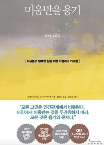 몇 년 전 우리 대한민국을 강타했던 아들러의 심리학을 조명한 기시미 이치로. 고가 후미타케의 '미움받을 용기' 에서 인간의 모든 고민들은 대인관계에서 비롯된다고 하였다. 관계를 원할 하게 하지 못하게 하는 가장 큰 걸림돌은 바로 자신과의 관계를 원활하게 하지 못한다는 점이다. 자신에 대한 응원, 지지, 믿음, 존중이 받쳐주지 않는다면 타인에 대한 관계를 원활하게 할 수 없다. 열등감이란 단어를 처음 쓴 사람이 아들러이다. 아들러는 열등감을 독일어로 '가치'가 '더 적은' '느낌'이라는 뜻이라고 했다. 즉 열등감이란 자신에 대한 가치판단으로
