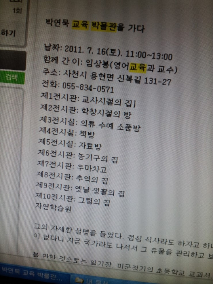 이번 여행에서 가장 많은 시간과 정신적 에너지를 쏟은 곳이 바로 이곳 박연묵 교육발물관이었습니다. 왜냐하면 앞에서도 사연을 소개했듯이 이 곳은 '약속의 땅'이었기 때문입니다. 그리고 모든 관람이 끝나고 그 예비선생님께서 왜 그리도 열정적으로 이 곳에 대한 설명을 했는지도 다시금 느낄 수 있었습니다.