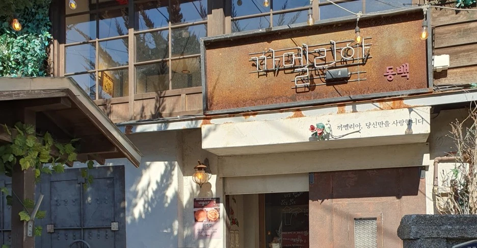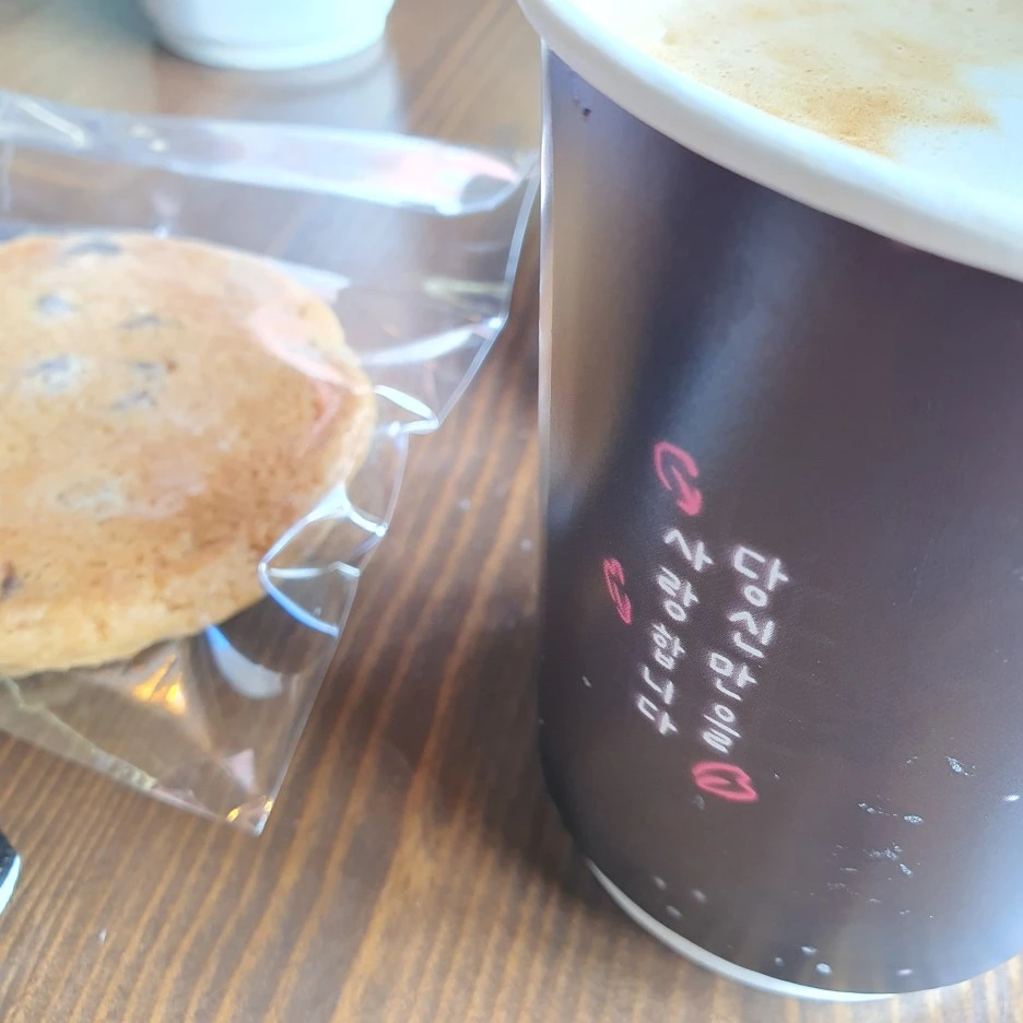 동백꽃 필 무렵 카페에서 커피를 마셨는데 컵에 '까밀리아'의 꽃말이 적혀 있습니다.