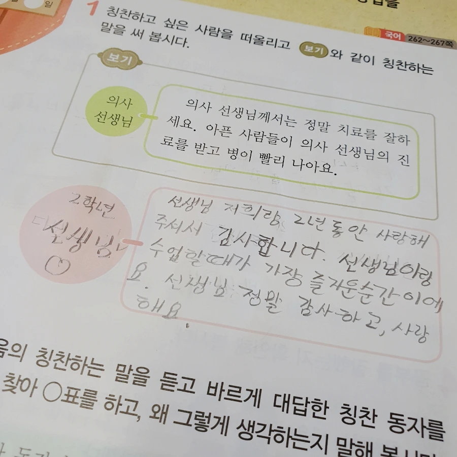 또 다른 어린이는 이렇게 칭찬하는 말을 선생님에게 전해주었습니다.