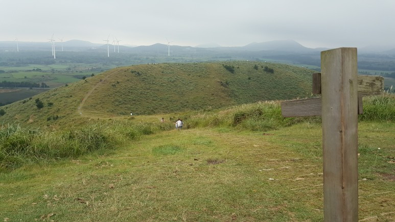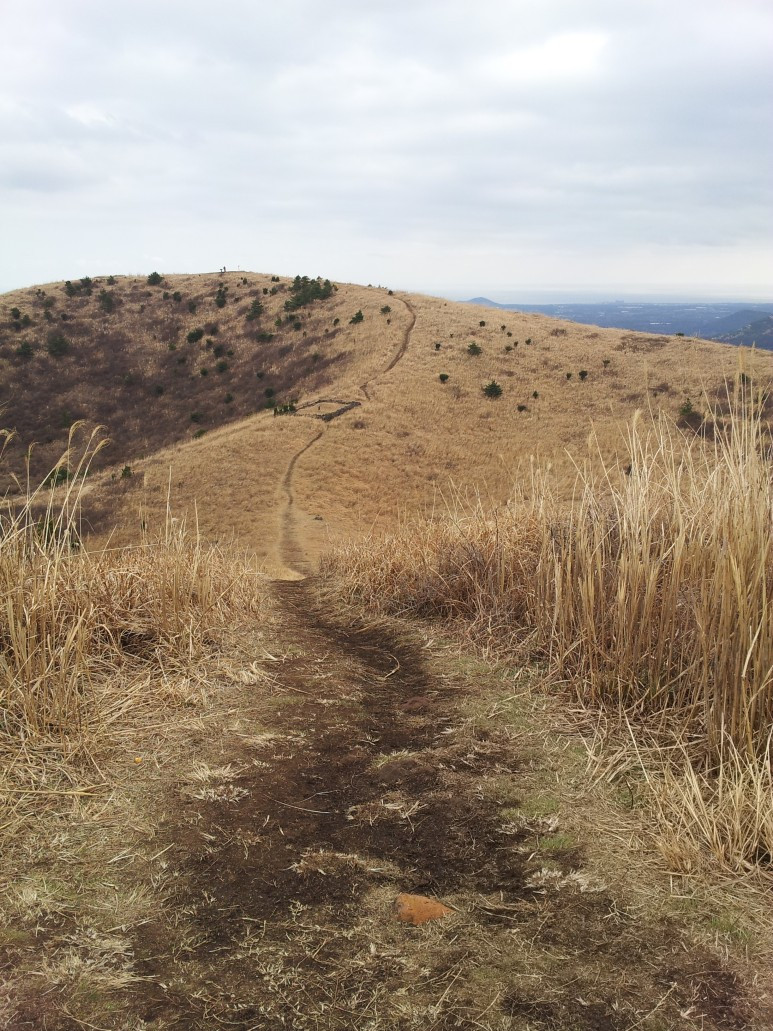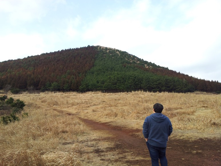 일단 오름 입구를 지나 오름을 한번 바라봐 주었습니다. 뒷모습에서 많은 것들이 느껴지시지요? 정말 많은 생각을 했습니다. 쿵푸 팬더 '포'도 생각이 나고 이걸 올라야 한다니 까마득했습니다.