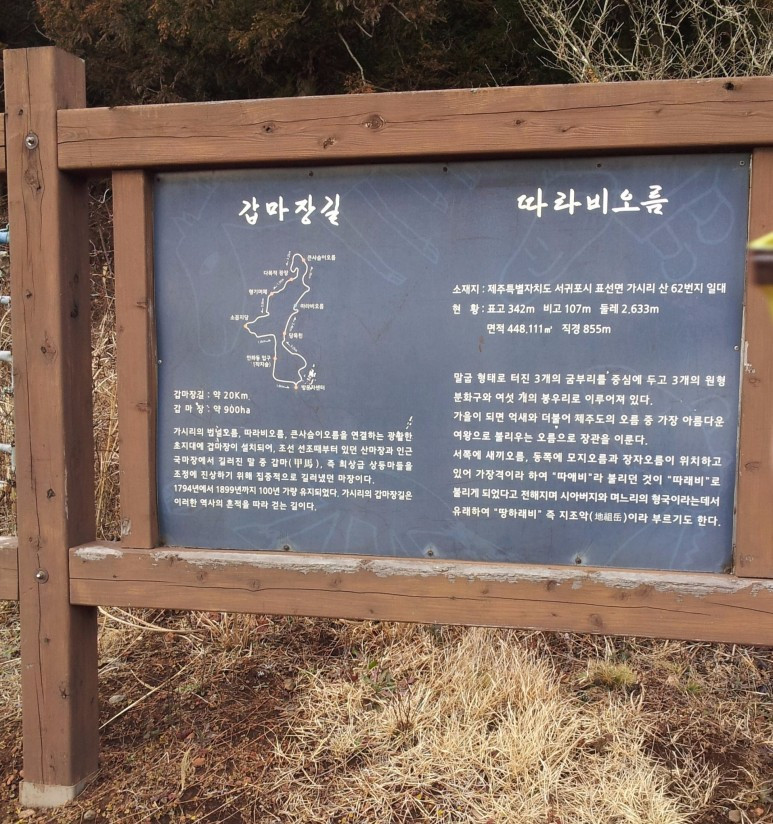 제가 올라본 오름이 계절 따라 어떻게 변하는지도 조금은 이야기하려고 하니 오늘은 글이 좀 길어질 듯합니다.
