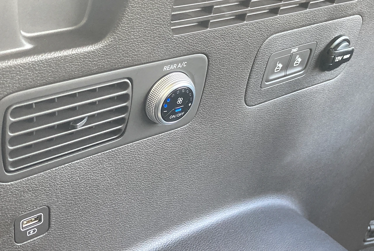 2열에도 USB 포트가 있어 스마트폰 충전 등이 가능했고 트렁크 오른편에 공조장치 버튼이 위치해 있습니다. 시트가 뒤로도 많이 기울어져서 편하게 탈 수 있습니다. 다만 3열은 정말 좁습니다. 저같은 거구의 체형은 거의 꽉 끼다시피 했는데 어린 아이라면 모를까 성인이 앉기에는 불편할 것 같습니다. 그리고 3열에 들어가는 과정도 생각보다 번거롭습니다. 7인승보다 5인승이 낫다는 생각마저 들 정도네요.