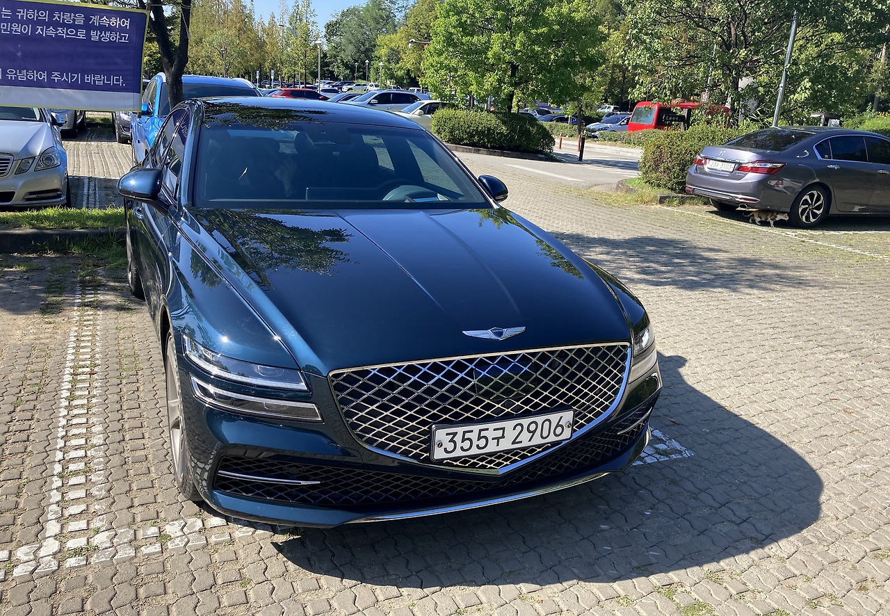 G80은 2.2 디젤, 2.5 가솔린, 3.5 가솔린으로 구성되어 있는데 시승 모델은 3.5 가솔린 풀옵션입니다. 색상은 태즈만 블루입니다. G80 출시 전후로 보도자료를 통해 봤었던 익숙한 색상입니다. 개인적으로는 G80에 가장 잘 어울리는 색상이라고 봅니다. 제가 G80을 산다면 이 색상을 선택할것 같구요. 다만 특히 ‘사하라 베이지’ 색상은 저하고는 취향이 맞지 않구요.