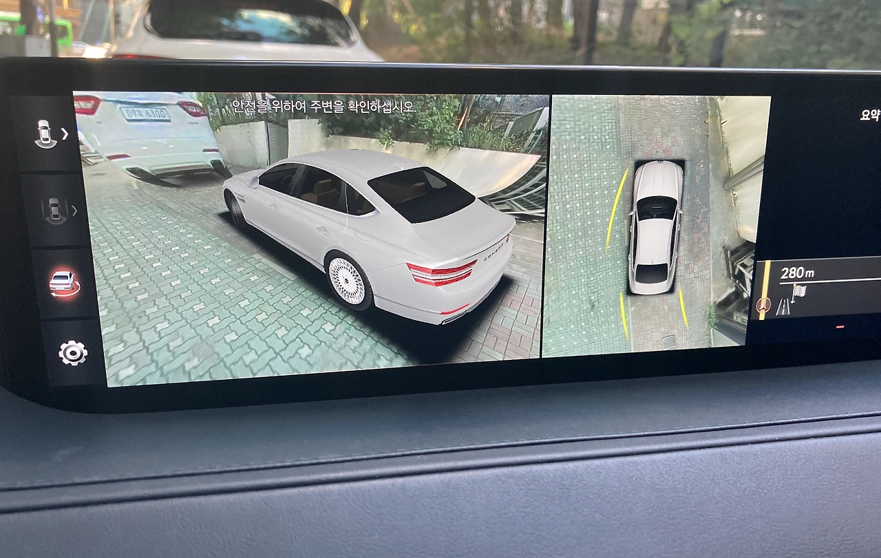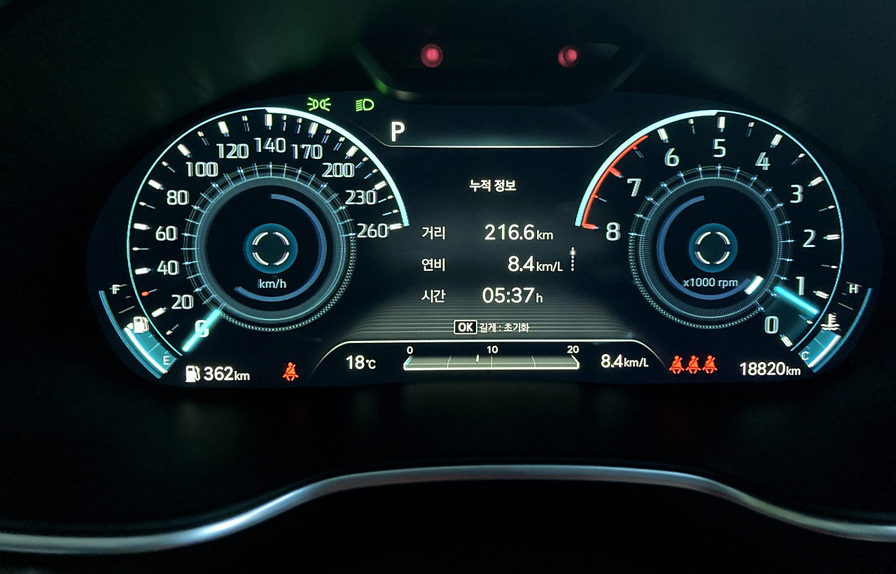 후진 기어를 넣었을 때 어라운드 뷰가 있으니 주차하기도 편합니다. 그리고 설정을 조작해보니까 이런식으로 화면을 조작하면 그에 맞는 화면이 구현되는 기능도 살펴볼 수 있었습니다. 주행을 마치고 연비를 확인하니 8.4km/ℓ를 기록했습니다. 퇴근 시간 정체가 너무 길다보니, 또한 주변에 사고가 발생하면서 길이 평소보다 더 막히면서 공인 복합연비 9.2km/ℓ보다 낮았습니다.
