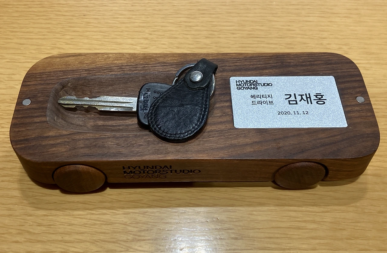 시승을 하기 앞서 라운지에서 키 전달식(?)이 있었습니다. 차량 모형의 케이스에서 열쇠를 꺼내는데, 제 이름표도 있네요. 다만 주행은 구루(전문 드라이버)가 하기 때문에 저는 동승만 할 수 있었고 키는 당연히 구루께서 가져가셨습니다.