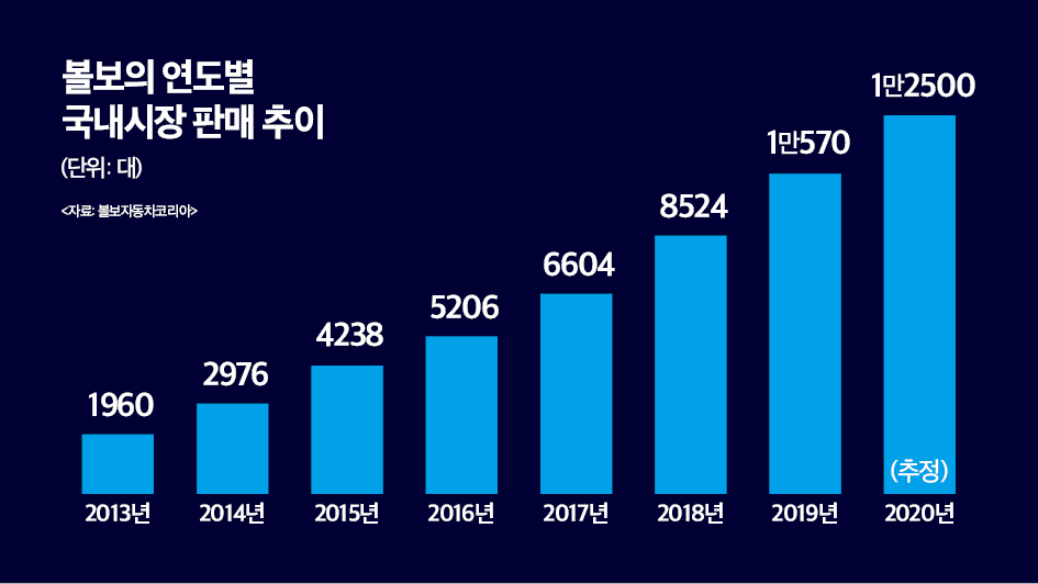 생각해보니 볼보 브랜드가 최근 몇년간 인기가 많이 높아졌습니다. 2013년 1960대에 불과했는데 2016년 5000대를 넘었고 2019년에는 한국 진출 처음으로 1만대를 돌파했습니다. 올해는 11월 기준 이미 1만대를 넘어 1만2500대 정도로 예상됩니다. 현재 수입차 시장은 벤츠-BMW의 양강에 아우디, 폭스바겐 등 크게 빅4가 주도하는데 볼보와 테슬라가 다크호스로 빅4를 추격하는 양상입니다.