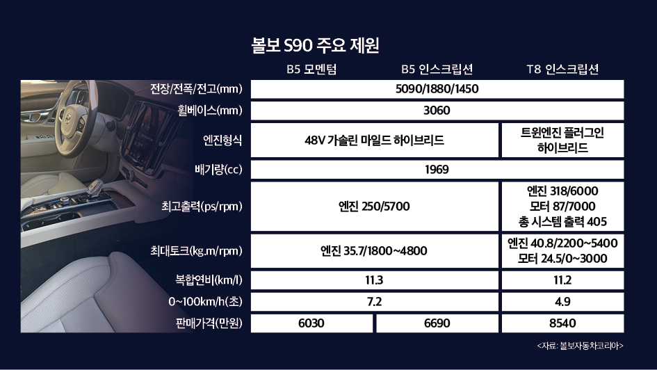 볼보 S90 모멘텀은 6030만원, 인스크립션은 6690만원입니다. 벤츠, BMW보다는 상대적으로 가격이 낮죠. 제네시스 G80의 시작가격은 2.5터보가 5300만원이니까 옵션을 몇 개 넣으면 가격이 비슷해집니다. 3.5터보는 5900만원이 넘어 가격 차이가 별로 없네요. 이런 점도 볼보의 인기 요인이겠죠.