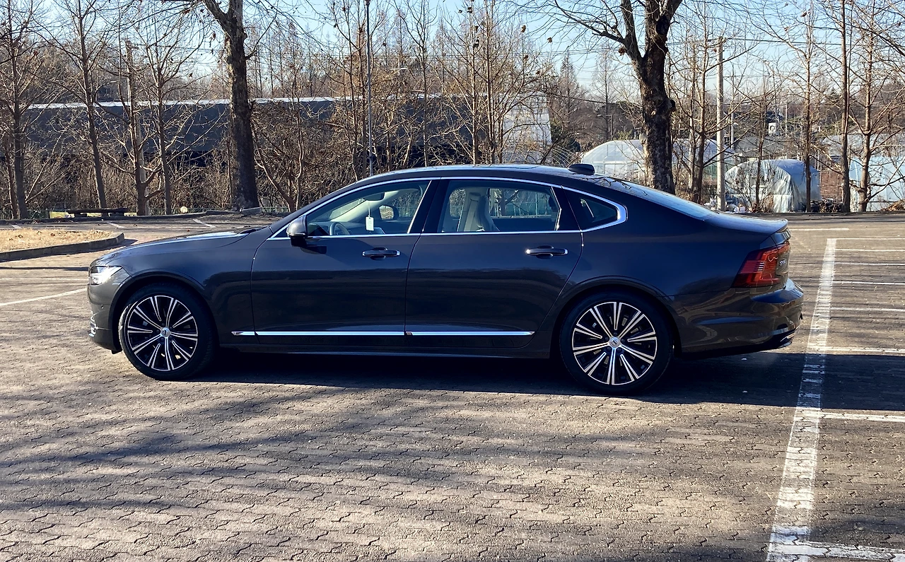 지난번에는 벤츠 E350 4MATIC AMG LINE을 시승했는데 연이어 볼보 S90을 타게됐습니다. 저는 벤츠 브랜드를 좋아하는(다르게 말하면 ‘벤츠빠’인가) 관점에서 S90을 시승해봤습니다. S90은 마일드 하이브리드가 탑재된 B5와 플러그인 하이브리드인 T8로 나뉘는데, 시승 차량은 B5였습니다. 모멘텀과 인스크립션 중 상위 트림인 인스크립션, 색상은 플래티넘 그레이입니다.