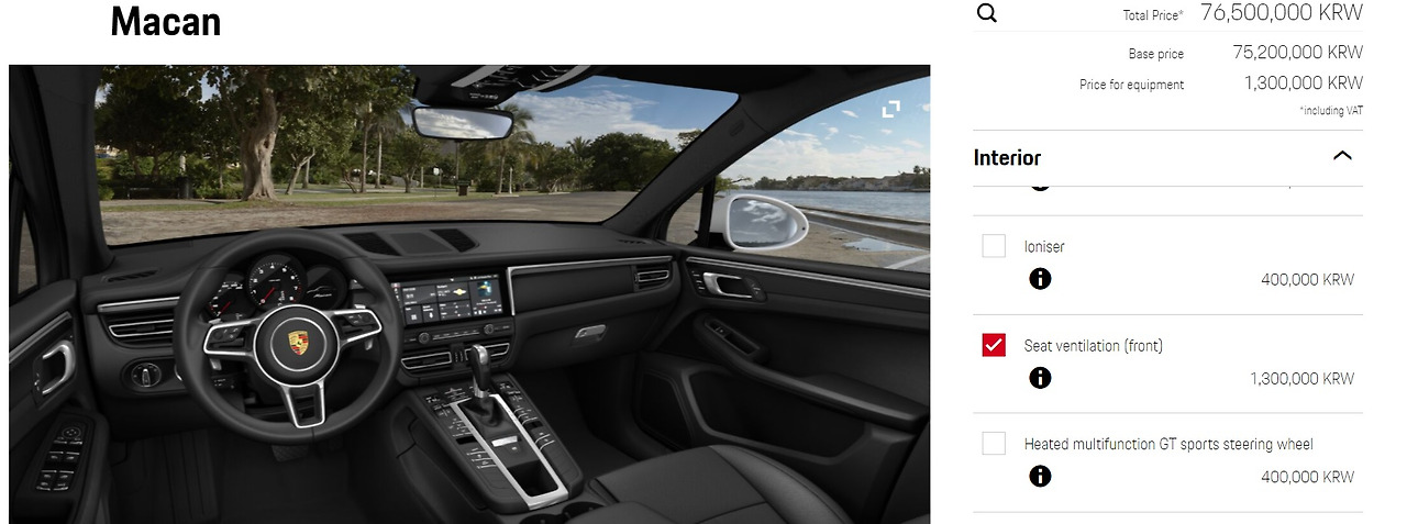 한번 가격이 얼마인가 궁금해서 포르쉐코리아 홈페이지에 들어가 견적을 한 번 내봤습니다. 분명 시작가격은 7520만원인데, 옵션이 징난아니게 많고 금액도 상당해서 몇 개 추가 안한 것 같은데 1억원이 넘어가버리네요.;;; 실제로 확인해보니 어마무시(!!) 합니다.