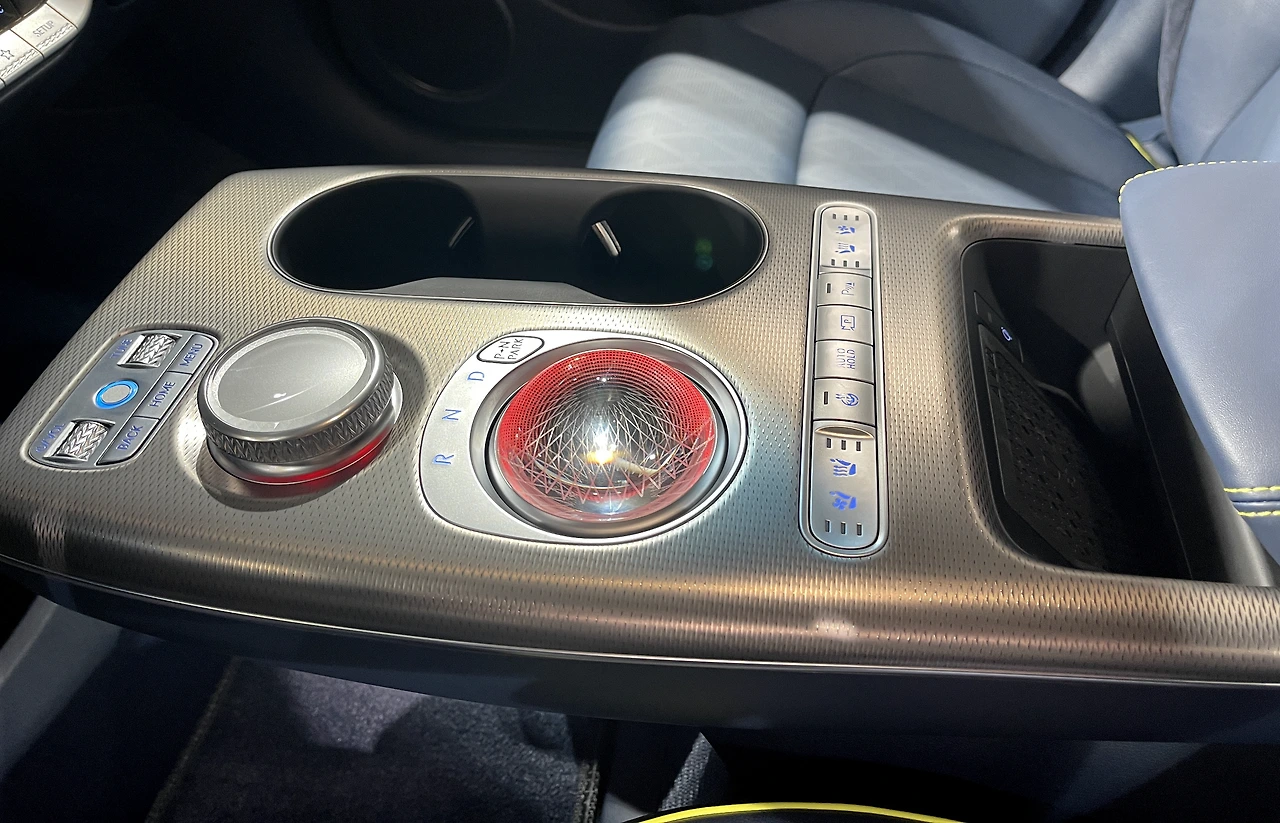 경쟁 모델과 차별화를 이루는 부분은 아무래도 구(球) 형상의 전자변속기인 ‘크리스탈 스피어(Crystal Sphere)’일 것입니다. 시동이 꺼져있을때는 무드등이 들어와서 운전자에게 심미적인 만족감을 주고 시동을 켤 때는 구 모형이 회전하면서 변속 조작계가 나타나 마치 미래 모빌리티에 탑승한 듯한 실내 분위기를 조성합니다.