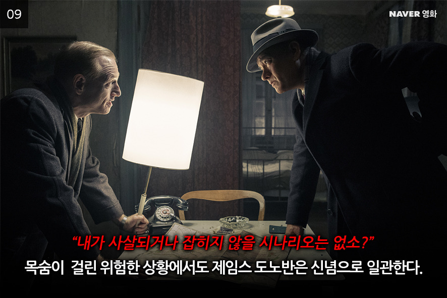 영화 초반에 소련의 스파이가 미국 당국에 의해 체포되는 장면이 나온다. 그는 사형을 감수하더라도 미국의 의도에 부합하는 증언을 하지 않는다.